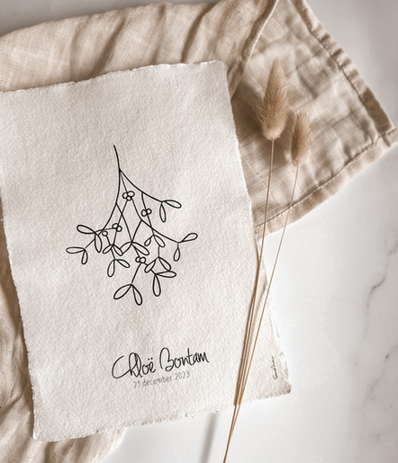 De Birthflower wordt geprint op handgeschept papier, hierin heb je verschillende keuzes qua kleur of printjes. (zie info)
